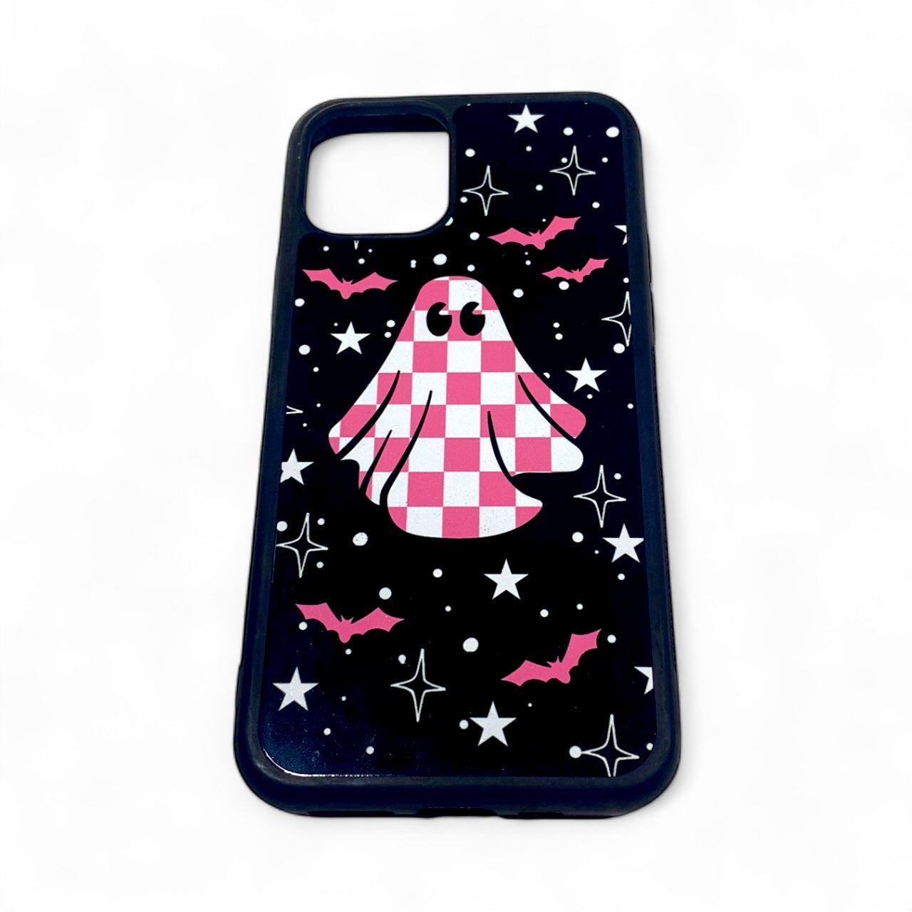 Bring a touch of spooky-cute style to your phone with our Pink Checkered Ghost Phone Case! Featuring a playful pink checkerboard ghost surrounded by stars and bats, this case is perfect for anyone who loves Halloween vibes all year round. Whether you’re shopping for yourself or gifting a fellow ghoul, this phone case is a must-have for cozy, spooky season lovers.